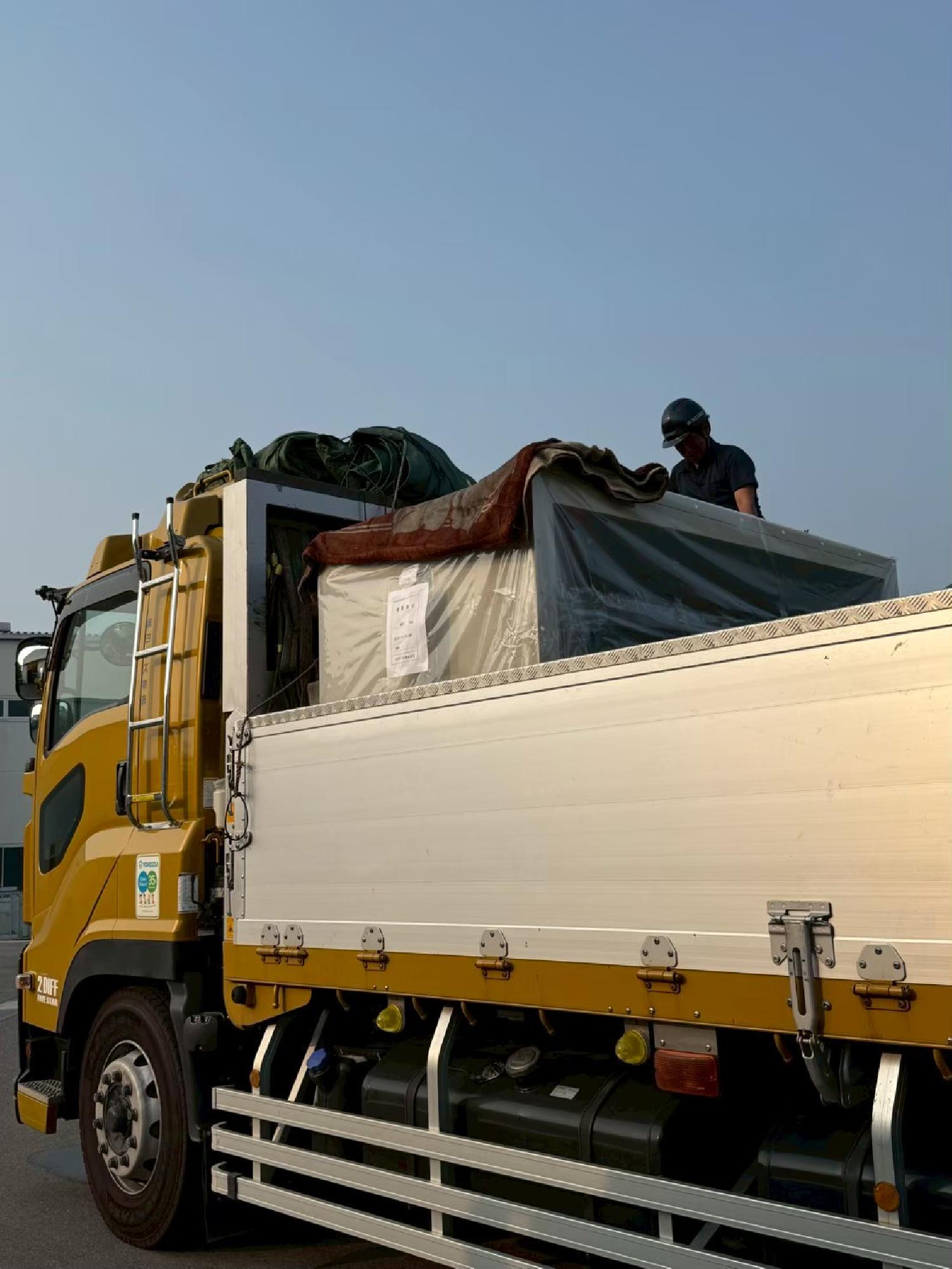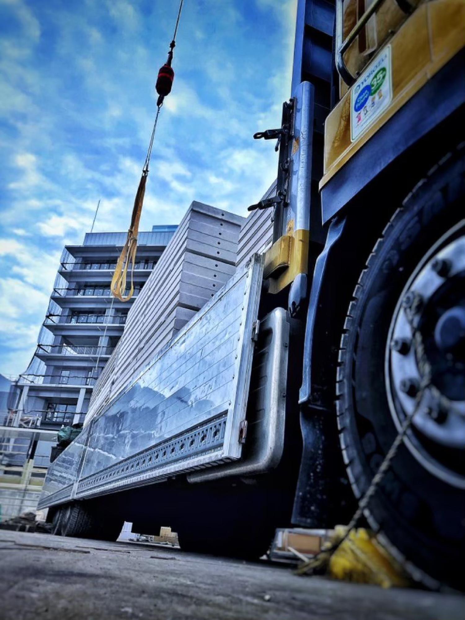 当社の運送は、平ボデー車両が中心です。箱車と比べると、平ボデーは荷物が露出している分、荷姿や重量バランス、固縛方法、天候の影響など、注意すべき点が多くなります。少しの判断ミスが、大きな事故につながる可能性もあります。その分、事前確認と段取りの重要性は高く、決して簡単な運送ではありません。