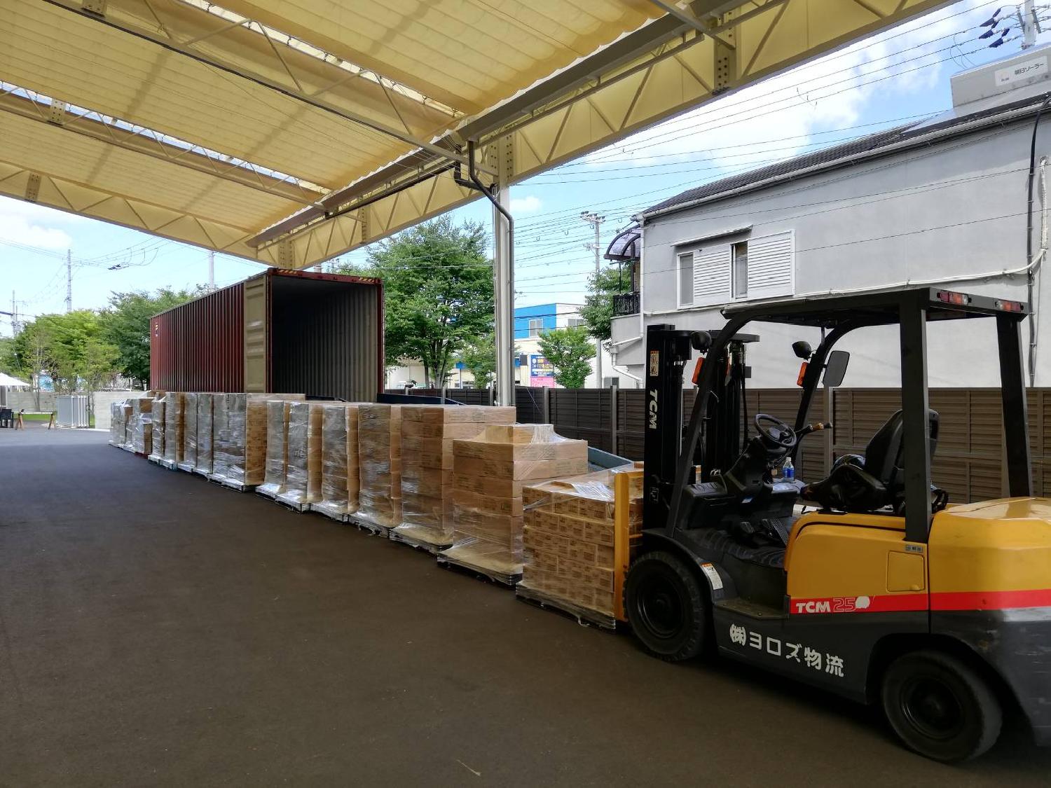 今月前半は商品を納品頂いて輸出するために積み替え作業と検品作業が集中致しました!お盆がある為、倉庫一時保管として倉庫内もすごい使用率です♬商品が混ざらないようにスタッフと協力して徹底管理致しました。