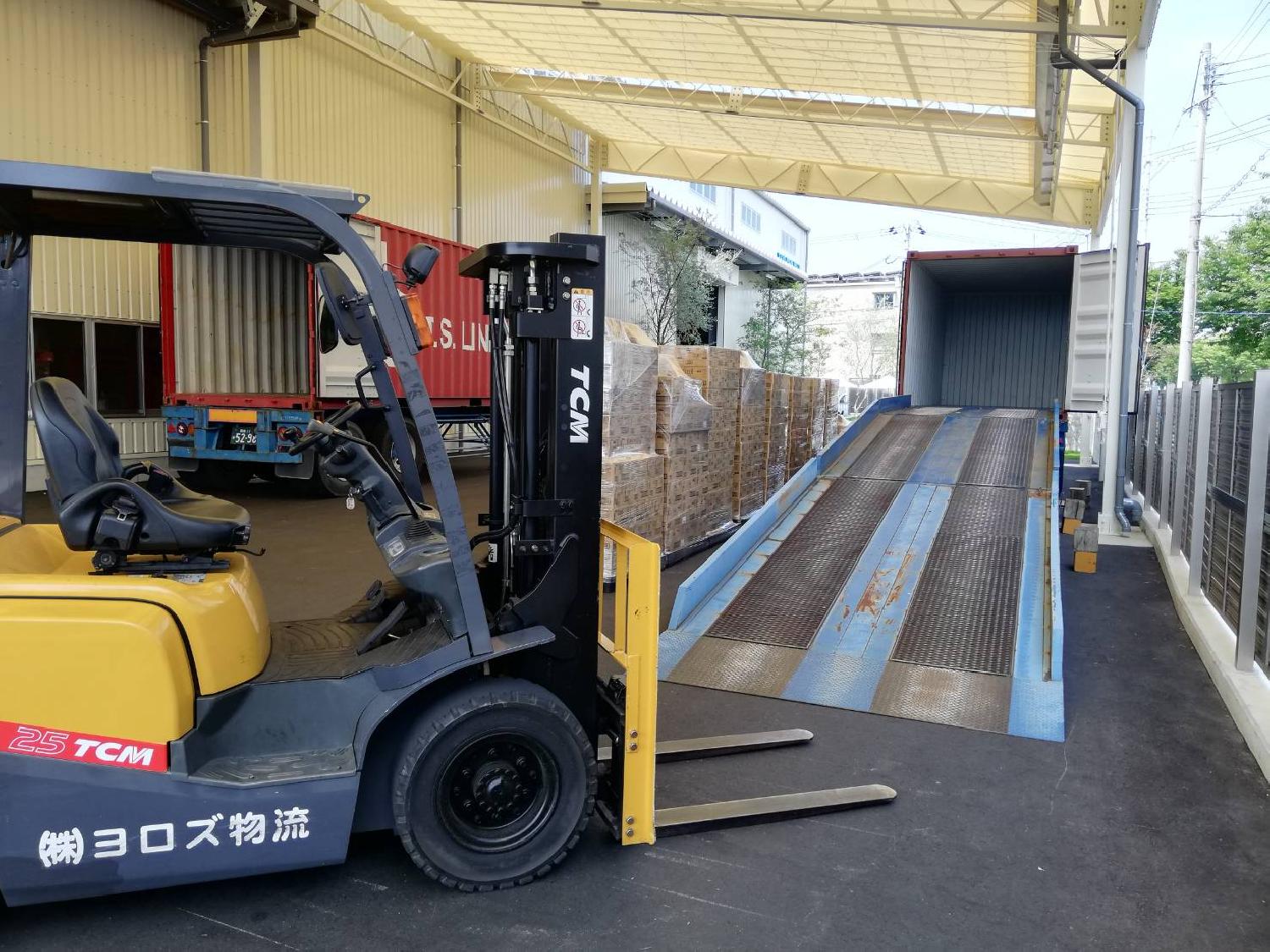 積み替えた商品のバンニング作業です。最近の入庫量が多い為、バンニング作業前に再度数量確認をし万全に致しました♬